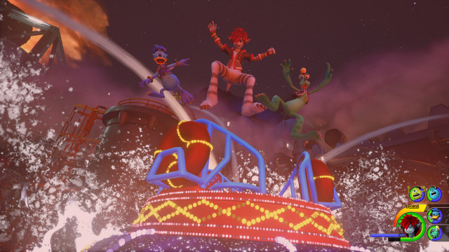 ソラはドナルド、グーフィーと、リク(ソラの親友)は王様[ミッキー]と旅をしています。旅の途中では、ドナルドとグーフィーが度々語りかけてくれる場面も。本当に一緒に旅をしているみたい。