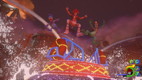 登場する各アトラクションは、電飾がキラキラと煌き、ド派手な演出が魅力の一つです。