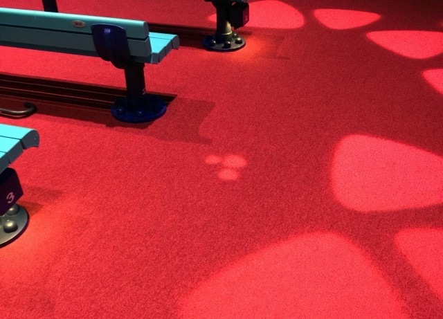 こちらも電気がついていないとわかりにくいのですが、意外と堂々とした隠れミッキーなんです。