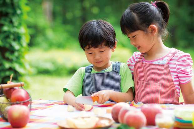 自分で収穫した野菜でカレー作り、新鮮な桃を使ったパフェ作り、乳搾り&アイスクリーム作りとメニューも多彩。身近にある“食”について楽しく学ぼう。
