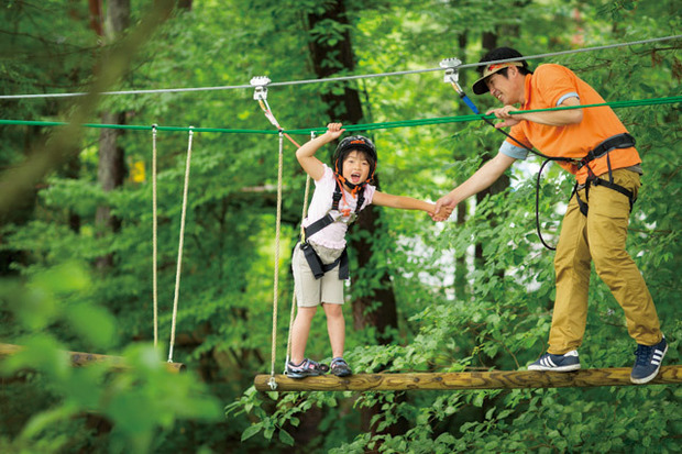 青空の下で収穫体験や料理をしたり、森の空中散歩に挑戦したり、夜の森を探検したり、驚きや発見の宝庫である自然を舞台にしたプログラムが充実している。