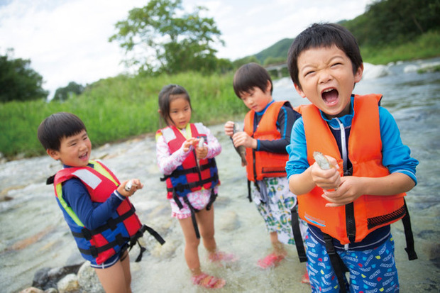 名水百選に選ばれるほど清らかで美しい尾白川がフィールド。生き物を観察したり、岩場からジャンプしたり、流れに身をゆだねてみたり、遊び方は無限大!