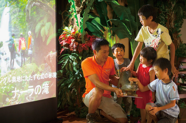 西表の固有種である「イリオモテヤマネコ」。島内に100頭ほど棲息するとされる貴重な生き物の生態を、模型やパネルで達人がレクチャーしてくれる。