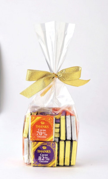 大袋に入っており、ラベルに「Thanks」と書かれているので、普段のお礼の気持ちをこめて会社で複数の人に差し上げるのにもおススメです。後引くおいしさがクセになります。