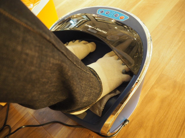 今回私は、「フットライト」と「トーケア」という2つのフットケアマシンを体験させていただきました。もう1つの「ソラーチ」については、以前、スーパースポーツゼビオ東京御茶ノ水本店で体験しています。特徴など、気になる方はご覧ください。