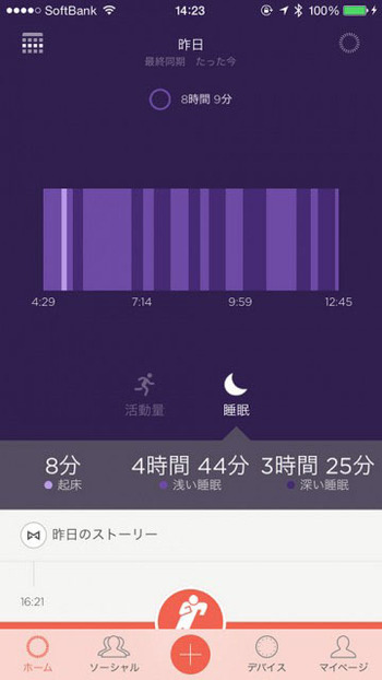 また、睡眠時間をトレースすることもできます。実はこれが結構おもしろいんです。