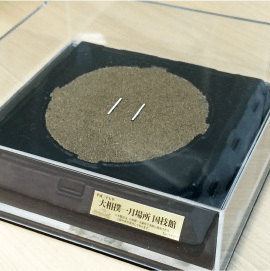 まず黒い台座に接着された本物の砂が映える「国技館土俵記念3Dミニチュア」。