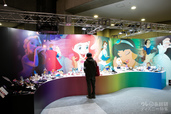 ディズニープリンセスの個性を虹の色で表現したブース展示