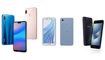 HUAWEI P20 lite、AQUOS sense2 SH-M08、ZB555KL-32S3