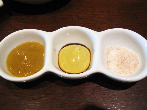 みがらし味噌、ディジョンマスタード、ピンクソルトの3種のタレが野菜の味をさらに引き立てます。