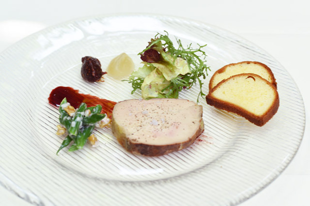 ローリエで包んで焼いたというフォアグラのテリーヌはそのままで食べても美味しいけれど、リンゴとフィグのソースをつけるとまた味が変わって絶品!