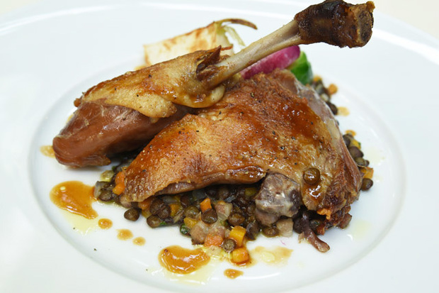 シャラン産鴨のモモ肉のコンフィ レンズ豆のラグーとシェリービネガーソース