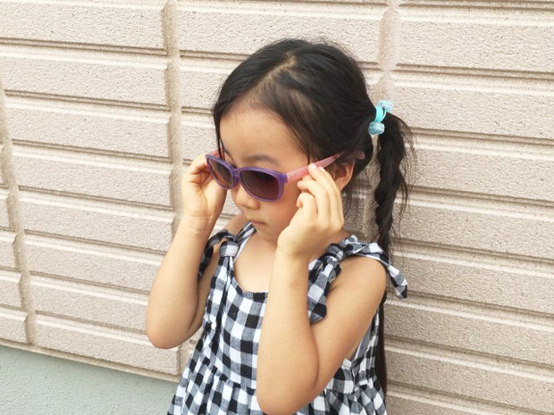 筆者の5歳の娘が使用しているのはJINSのサングラス。オシャレなデザインのものが多いですが、紫外線を99.9%カットしてくれるすぐれものです。