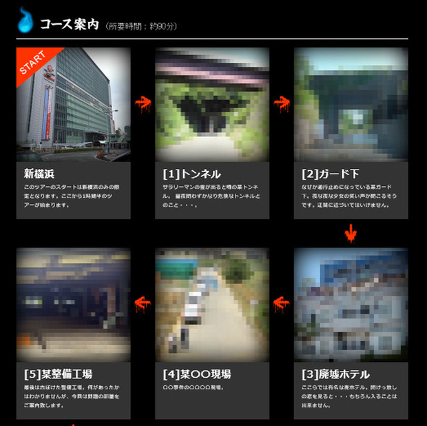 ツアー期間は2015(平成27)年7月24日(金)~9月4日(金)までの、毎週金曜・土曜。1日限定1組で、料金は1台6000円。運行時間や距離を考えると、とってもお得な値段だそう。出発は午後9時に新横浜駅から。約1時間30分かけて知る人ぞ知る、新横浜周辺の心霊スポットを巡っていく。