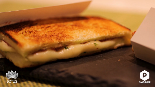 イベリコ豚の生ハムを使用したリッチなホットサンドは、チーズもたっぷり! ビジュアルだけでチーズの豊かな風味が口いっぱいに広がりそうですよね。