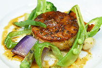 ジューシーな背肉を、黒胡椒ソースで。骨に近い部分ほど、その肉の個性が感じられる。