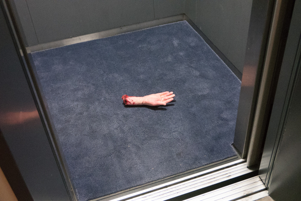 エレベーターに手首のあたりからバッサリと切り落とされた、手が落ちていました。普通にビックリ! 演出上の小ネタ? なにかの間違いで取り残されていたのでしょうか?