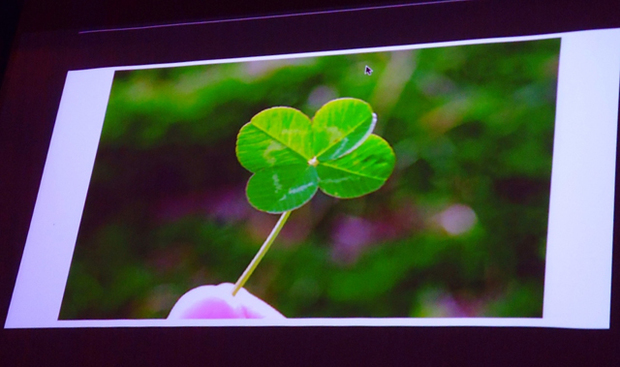 今回のイベントに先駆けて六本木の公園で雑草を採取していたら、四つ葉のクローバーを発見したそう。四つ葉が存在する確率は、約1万分の1とか。