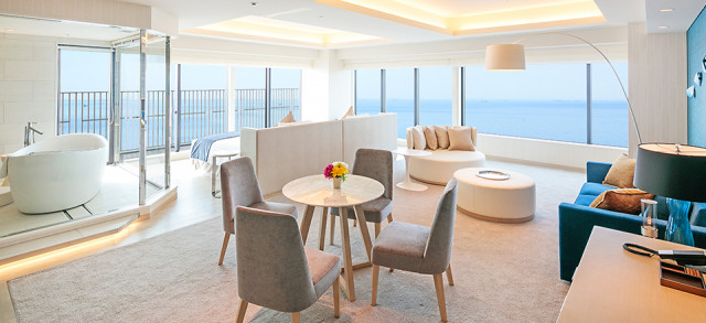 新浦安・湾岸エリアの都心からわずか30分というロケーションで、東京ディズニーリゾート®へのアクセスが良い、空と海に囲まれたアーバンリゾートホテルです。多彩な客室はファミリーやグループなどで利用でき、客室から東京ベイを一望、都心の喧騒から一歩離れた東京ベイリゾートを楽しめます。