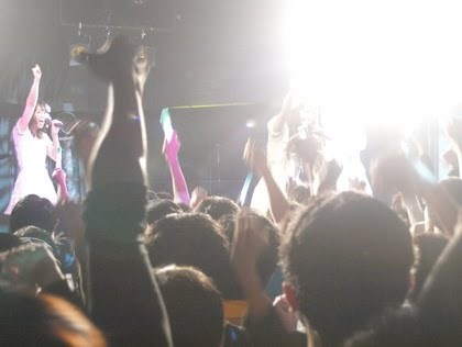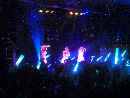 再登場した3人は、NegiccoTシャツ姿。そして、今日最高の表情でステージ狭しと駆け回っていました。ライブ前は、緊張のあまり、「怖い」とまで言っていたKaedeちゃんも、楽しみです!とがんばっていたMeguちゃんもテンパっていたNao☆ちゃんも、満面の笑みです。鳥の鳴き声や環境音のイントロから『EARTH』。そして初期楽曲にして盛り上がりまくりの『トキメキ★マイドリーム』で大騒ぎ。カラーボールやエコバッグを投げたりして、渋谷VISIONは餅撒き状態に!ここにいる全員に、福が来ますように!