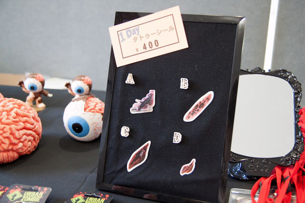 撮影代は、1人800円、2人650円、3人500円。人数が増えるほど、お得。タトゥシールを購入すれば傷メイクも可能です。