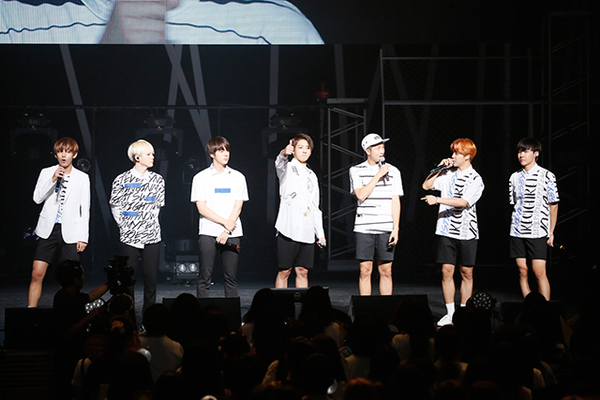 中盤では、昨年6月の日本デビューからの映像が公開され、トークを展開。RAP MONSTER(ラップ モンスター)は、「あっという間に過ぎましたね。僕たち、本当に一生懸命でした」としみじみコメントし、Vは「すごく大変でしたが、A.R.M.Yがいてくれたから、全然苦ではなかったです」とファンに感謝。