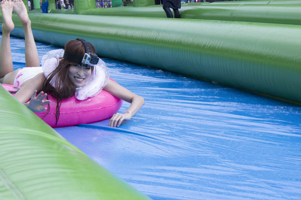 ですが、スライダー入り口に到着すると、ビートの効いたBGMと会場の雰囲気に後押しされ、気合充分!