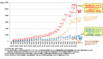 国内のブロードバンド契約者の総トラフィックが増加