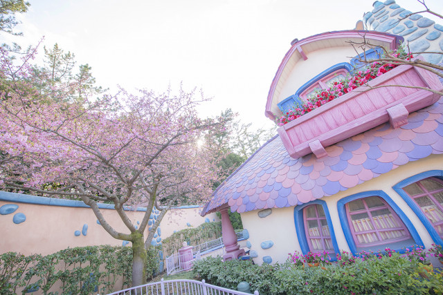 東京ディズニーランドのミニーの家で、2019年3月2日「ミニーマウスの日」に河津桜が開花しました。