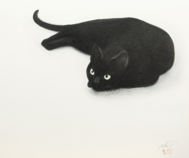 そんな高橋氏が描く猫は、鉛筆と色鉛筆で描かれたとはとても思えないほど、繊細で猫本来の可愛らしさに溢れている。