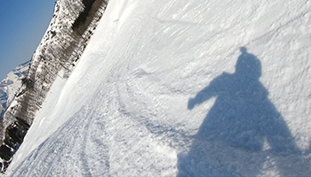GoProの手ブレ補正の性能を試すため、斜面のついたカーブが連続する「バンクヤード」を滑ってみた。バンクヤードでは、遠心力に身を任せて体を雪面と90度にするテクニックが必要になる。このスリルと快感を映像として残せるのだろうか。