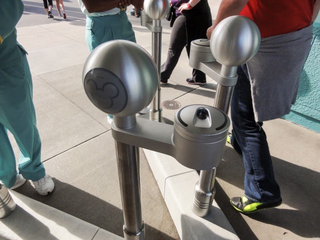 パークのエントランス・ゲート。ミッキーの形をしたセンサーに、マジックバンドやチケットをかざす仕組みだ。