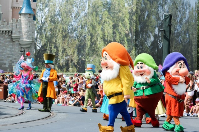そのあとに続くのが、白雪姫と小人たちです。こちらもフロートではなく、歩いて登場します。