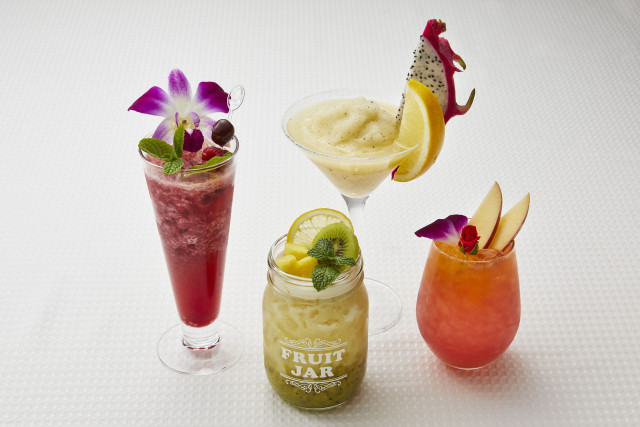 ロイヤルスコッツとフォンテーヌで味わえる「GREENSコラボレーションカクテル」は、ピーチとグレープフルーツを爽やかに組み合わせた「プリンセスピーチ」、アサイー、ベリー、梅酒のバランスが絶妙な「ナチュラルビューティー」、さっぱりとした味わいの「ゴールデンピタヤマルガリータ」、緑香る涼やかなノンアルコールカクテル「グリーンズキューティー」の4種類。