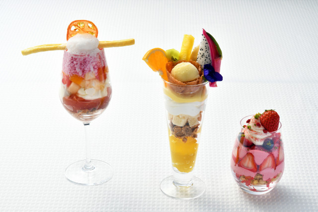 野菜や果物の豊かな食感と、香りや色が楽しめるカゴメの「GRRENS」を生かして、パティシエとバーテンダーが創作したパフェとカクテルが登場。