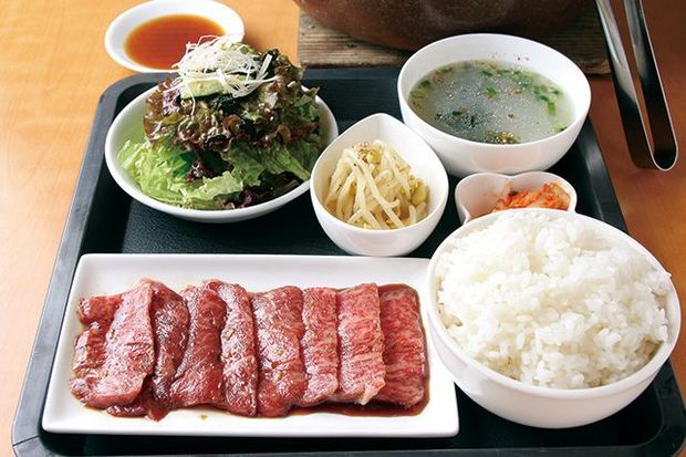 カルビやロースに、小鉢も付く。コーヒーも無料。