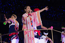 オオカミの咆哮が聞こえると、ステージのセンターで、ブルーのライトに照らされる、メンバーがたちが作り出す美しい“生命の木”。『Wolf』で、一気にEXOの神秘的な世界観に引き込むと、続けて、カイのダークで魅惑的なソロダンスパフォーマンスで魅了。そこから『Overdose』へと繋がれ、ヒット曲の連発に、スタジアムの興奮は加速した。