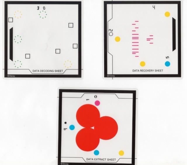 どうやら、3枚のシートと3つの問題を重ねるとスティッチの居場所を特定することができるようです。