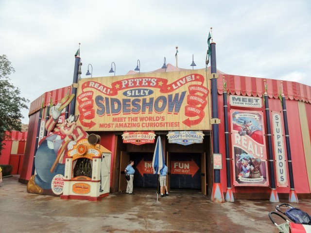 マジック・キングダムでは、ミニー、デイジー、ドナルド、グーフィーの4人が、同じ場所でグリーティングを行う「ピートのシリー・サイドショー」という施設があります。