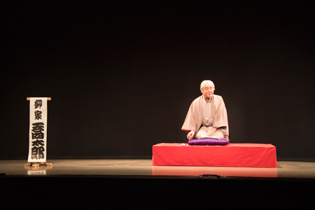 まず舞台上に用意されていたのは高座だった。開演時間になると出囃子が流れ、落語家・柳家喬太郎が登場する。そこで始まるのは、落語同様“まくら”だ(喬太郎のまくらは落語ファンに人気が高いもの。ぜひ注目を!)。そして喬太郎の話に夢中になってきた頃、突然その世界が舞台として動き始めるのは爽快だった。