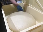 縁あって、パン工房で4年修業した坂本昭さんが来てくれることになった。何度か試作をくりかえし、オリジナルのバンズが完成した。坂本さんが、ひとりで生地を仕込み、バンズを焼いている。小麦粉は国産小麦「そめいよしの」。1日に250個のバンズを4~5回に分けて焼いている。