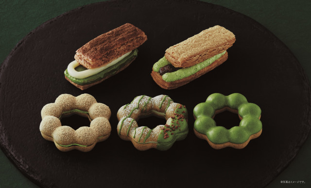 “和素材”と“洋素材”の相性をより追求した『抹茶スイーツプレミアム』は、祇園辻利の宇治抹茶を練り込んだ生地にマスカルポーネチーズクリームをサンドした「ポン・デ・宇治抹茶マスカルポーネクリーム」や、スティック状のデニッシュ生地に祇園辻利の宇治抹茶を練り込んだチョコをコーティングし、マスカルポーネチーズクリームをサンドしてココアパウダーをふりかけた「宇治抹茶ティラミスデニッシュ」など、5種類が登場します。
