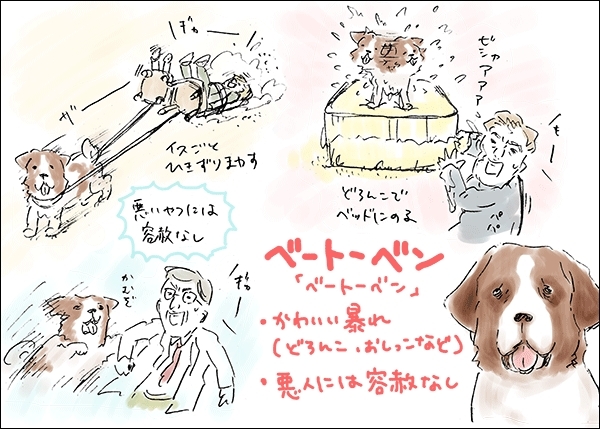 「ベートーベンのいたずらにパパガチギレ!」みたいなあらすじだったので、暴れ犬の気配を感じたんですが、泥んこで家に上がるなど家族に対しては割と基本の暴れ。