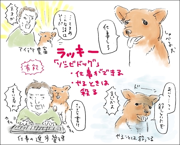 ラッキーは主人公とテレパシーで対話できるんですが、脚本のアイデアを出したり作業の進度を管理したりと、暴れるどころか超仕事のできる犬。さらには出会いを演出して彼女まで作ってあげる始末…有能すぎ! 採用!