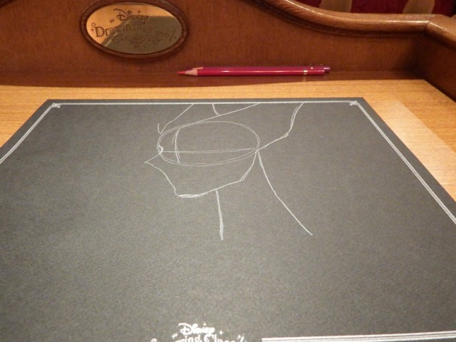 最初は白い鉛筆を使って薄く補助線を描きながらマレフィセントの顔となる基礎部分を描いていきます。