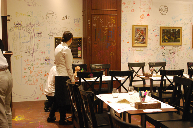 そして店内では、楽しそうに壁に落書きしているカップルがいたっ!!