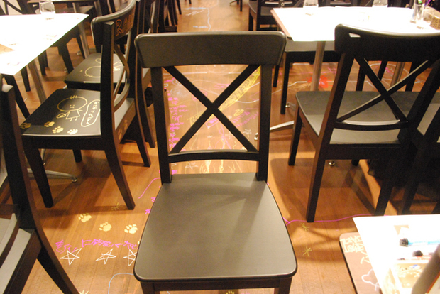 どうせならめっちゃ目立つところに書きたい…と、言うことで椅子に落書き開始!!