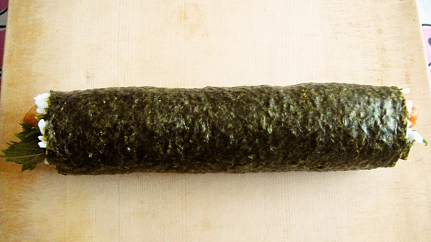 では、今度は「全型」の大きな海苔で巻いてみます。