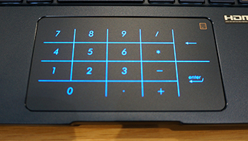 ZenBook 13とZenBook 14は重量が約1.25kgほどのノートPCで、タッチパッドがワンタッチでテンキーになる「NumberPad」機能を搭載。タッチパッド内に描かれているアイコンに触れるとタッチパッドの表面にテンキーが浮かび上がり、触れる事で数字の入力が可能だ。モバイルPCながらテンキー機能を利用する事で、数字を使った業務効率や生産性の向上に期待できる。