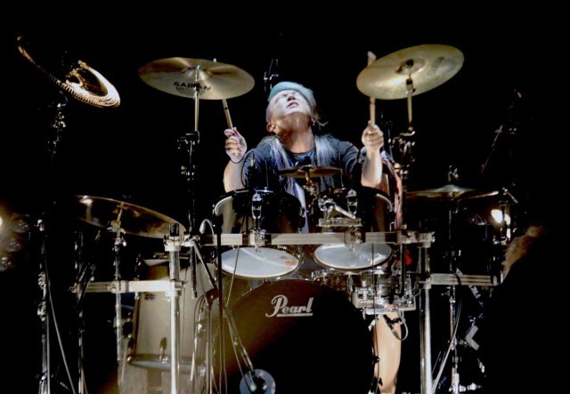 大きく天を仰ぎスティックをふりかざすTOMO(Dr)のドラムソロをはさみ、『DAMNED』ではK(G)とRay(G)のエレアコが色を添える。